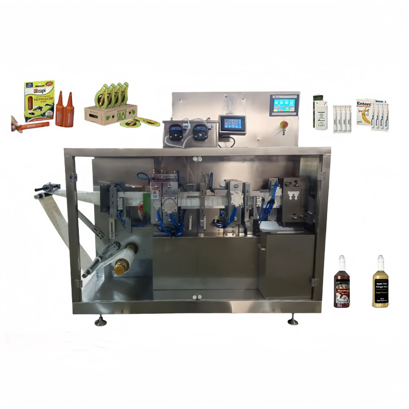 इस प्लास्टिक एम्पुलेट पैकेजिंग मशीन में प्लास्टिक एम्पुलेट बनाने और भरने की प्रणाली शामिल है।